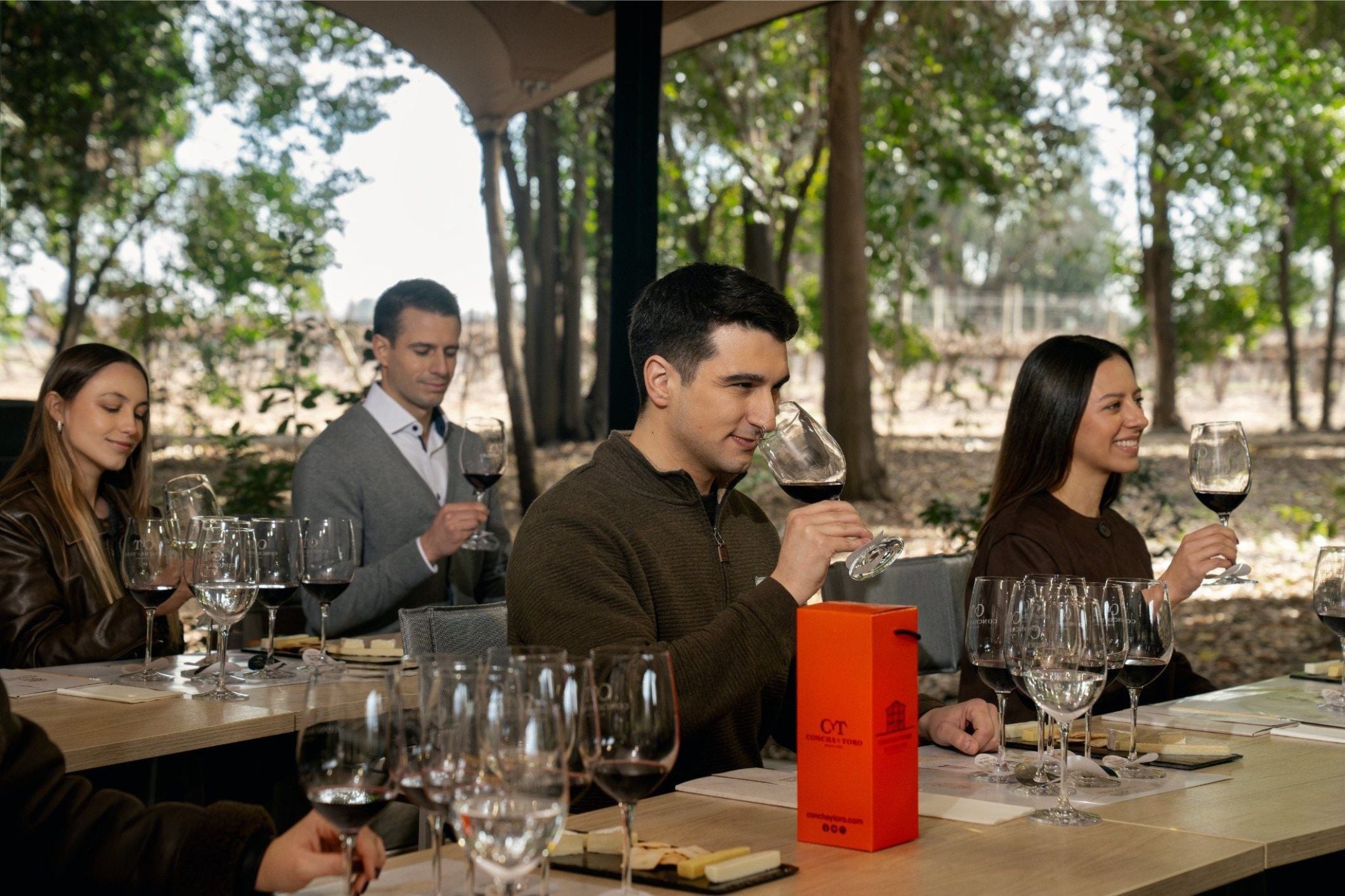 La experiencia culmina en un ambiente íntimo y privilegiado con una degustación guiada de seis vinos Marques de Casa Concha: cuatro de sus etiquetas clásicas y sus dos nuevas ediciones, Blue y Gold. Cada copa se acompaña de una delicada selección de quesos finamente elegidos para realzar los matices de cada vino.